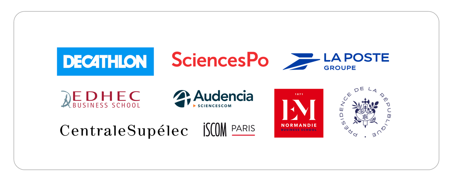 Rejoins les grandes entreprises et les étudiants des plus prestigieuses écoles françaises déjà accompagnées par nos soins :